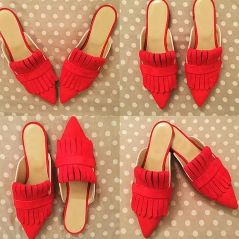 | Name | Red Velvet Flats Pointed Toe Pump Mules Casual Flat Fringe Shoes |