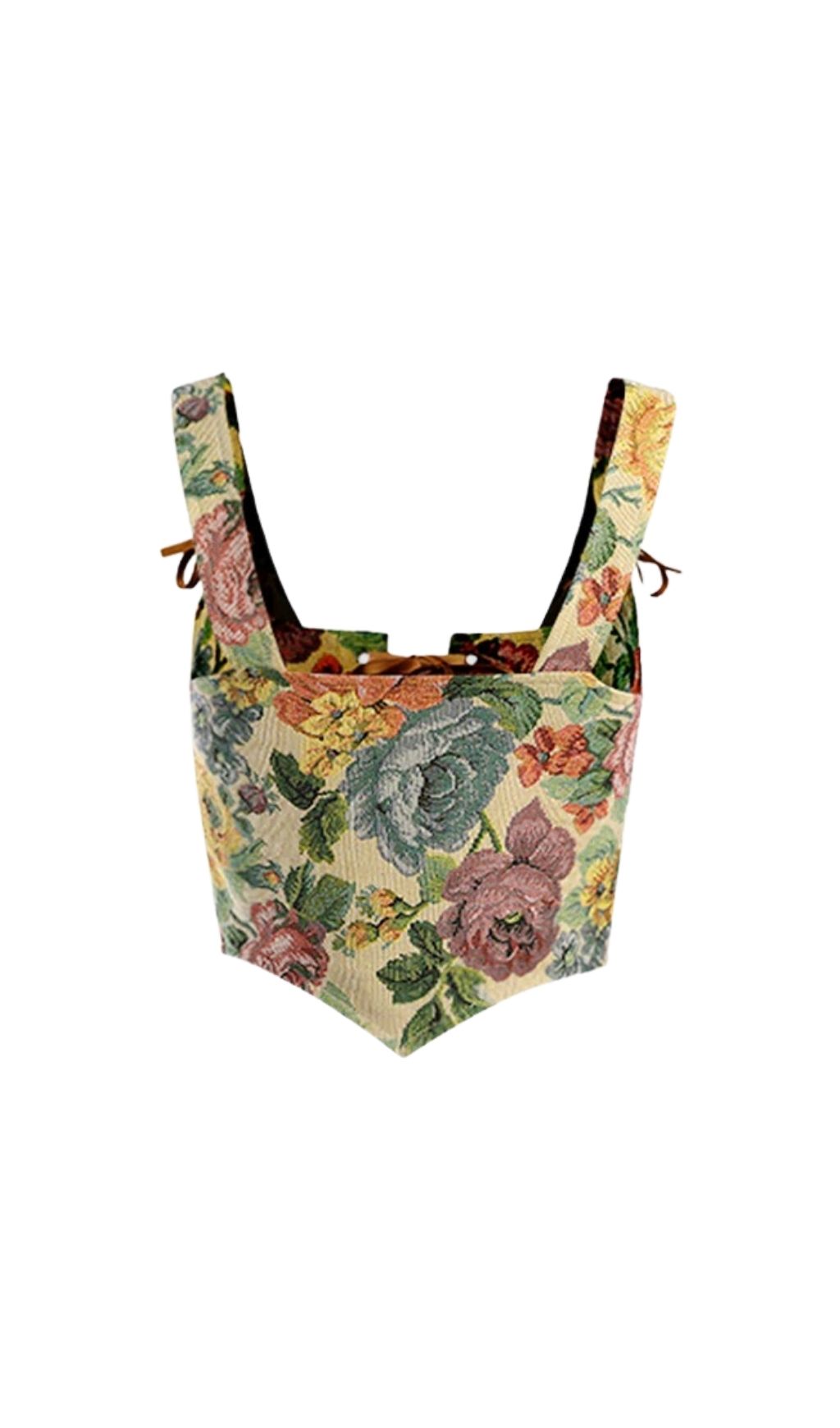 Retro Floral Embroidered Straps Cami Top