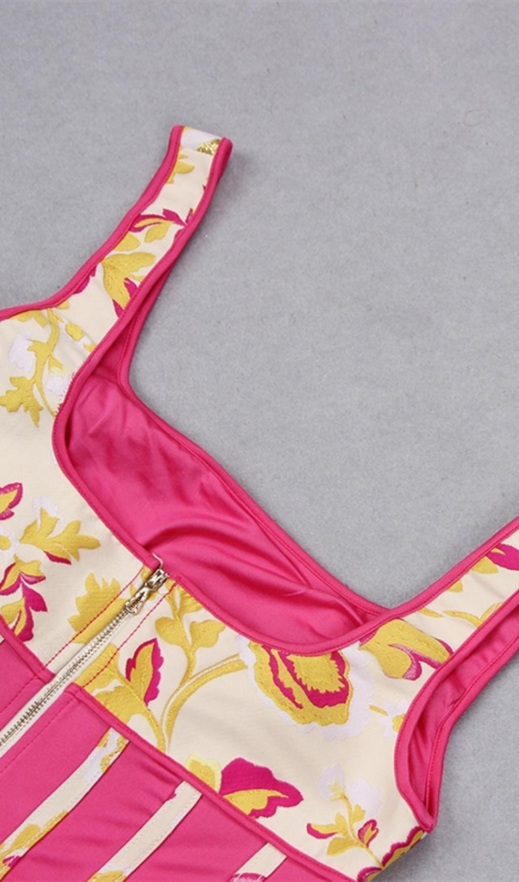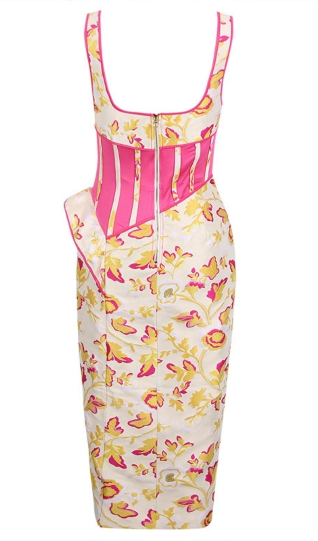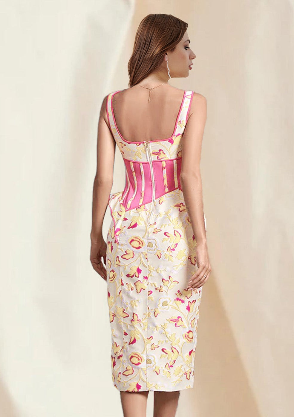 Fall for our Rose Floral Jacquard Midi Dress. The Dress designed in a floraljacquardwith a ruffle detail.The side split reveals a flash of leg and it has a zip to the back for easy on.Pair with your favorite heels and you'll be ready for date night.