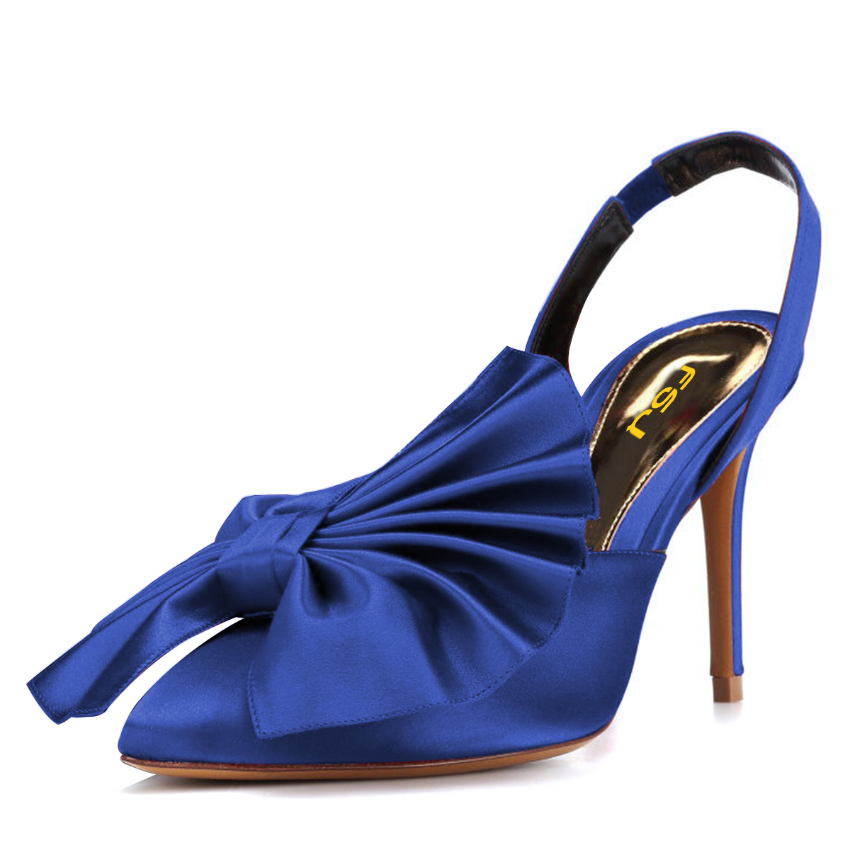 | Name | Royal Blue Satin Bow Heels Almond Toe Stiletto Heel Slingback Pumps |