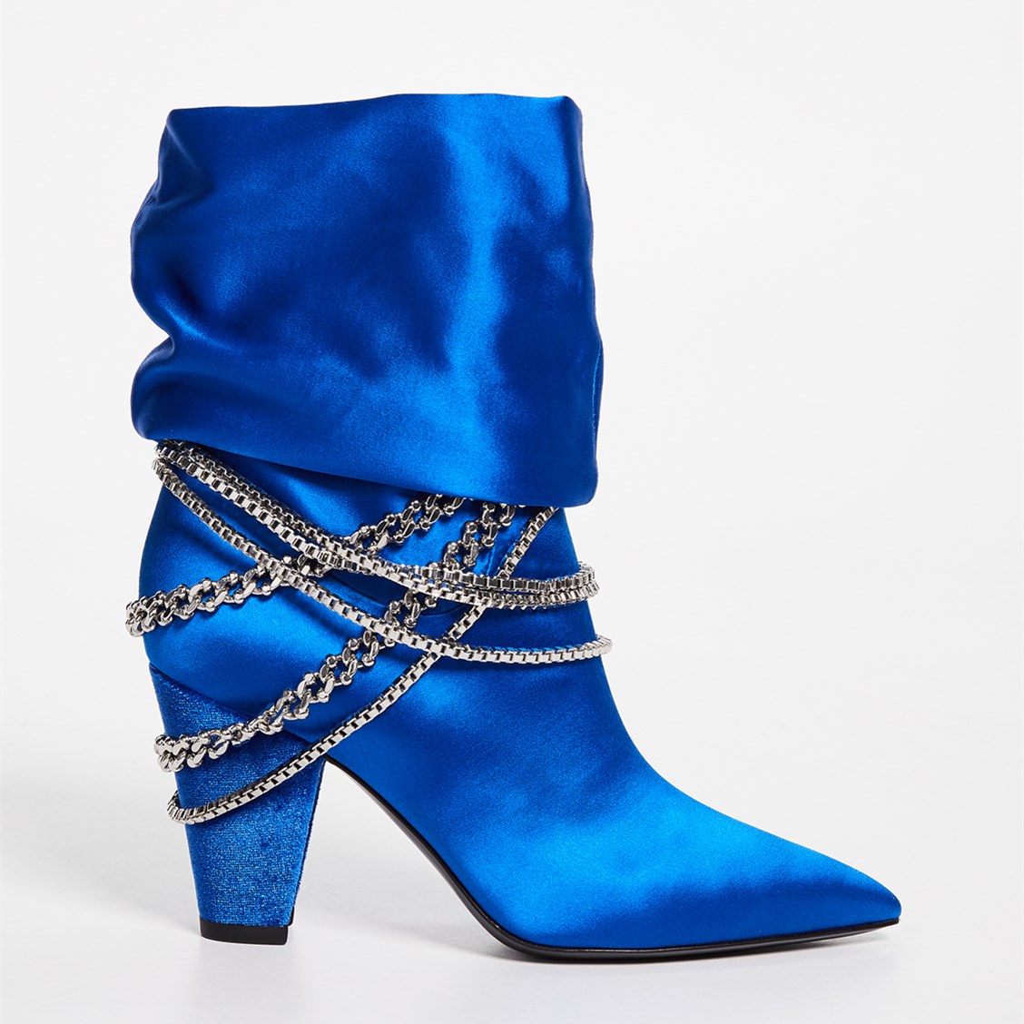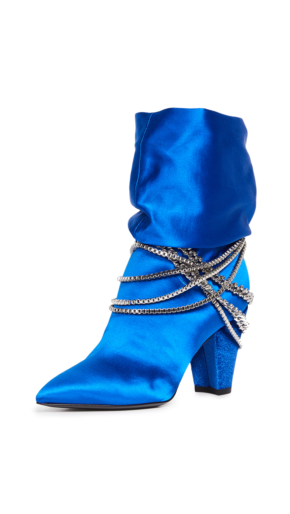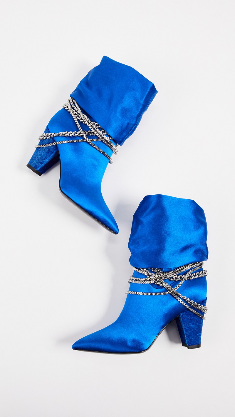 | Name | Royal Blue Satin Chunky Heel Boots Pointy Toe Ankle Boots with Chain |