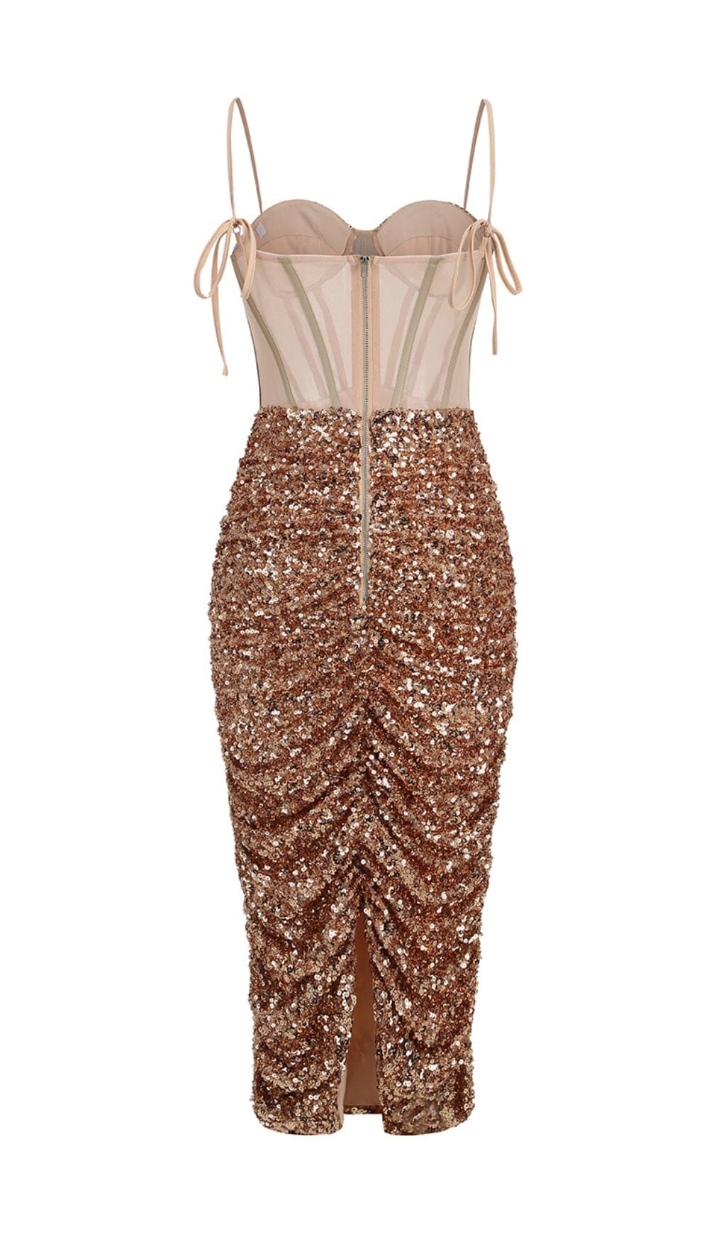 Shine bright like a diamond in this show-stopping Sequin Corset Midi Dress in Champagne. This dress is the epitome of glamour and elegance. featuring a corset-style bodice with structured boning and dazzling sequins that catch the light from every angle. The sweetheart neckline and midi-length skirt add a touch of sophistication. while the adjustable straps ensure a perfect fit.The champagne color is neutral and versatile. making it perfect for a wide range of occasions.