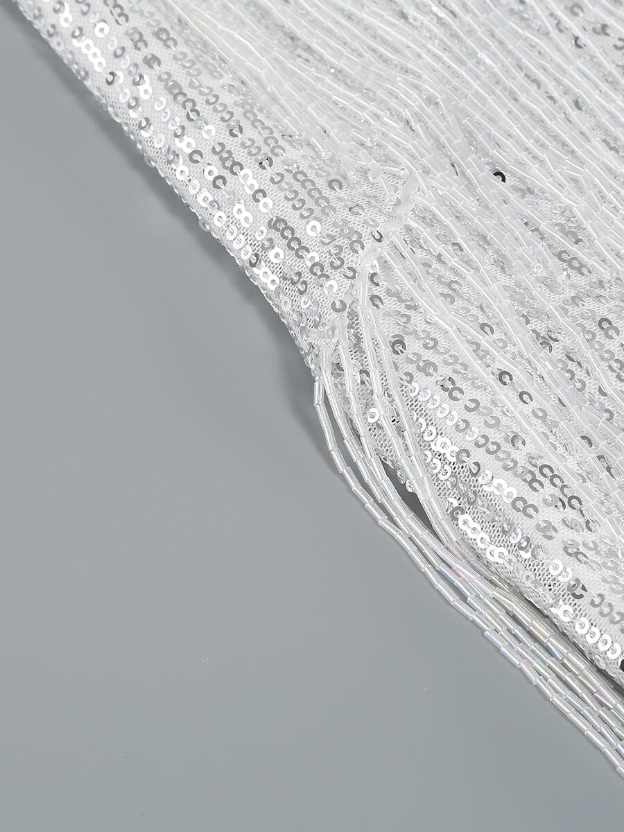 This dress is made from a high-quality sequin fabric that will shimmer and shine with every step you take. while the tassel detailing adds a touch of playful sophistication. The backless design adds an alluring and daring touch to the dress.