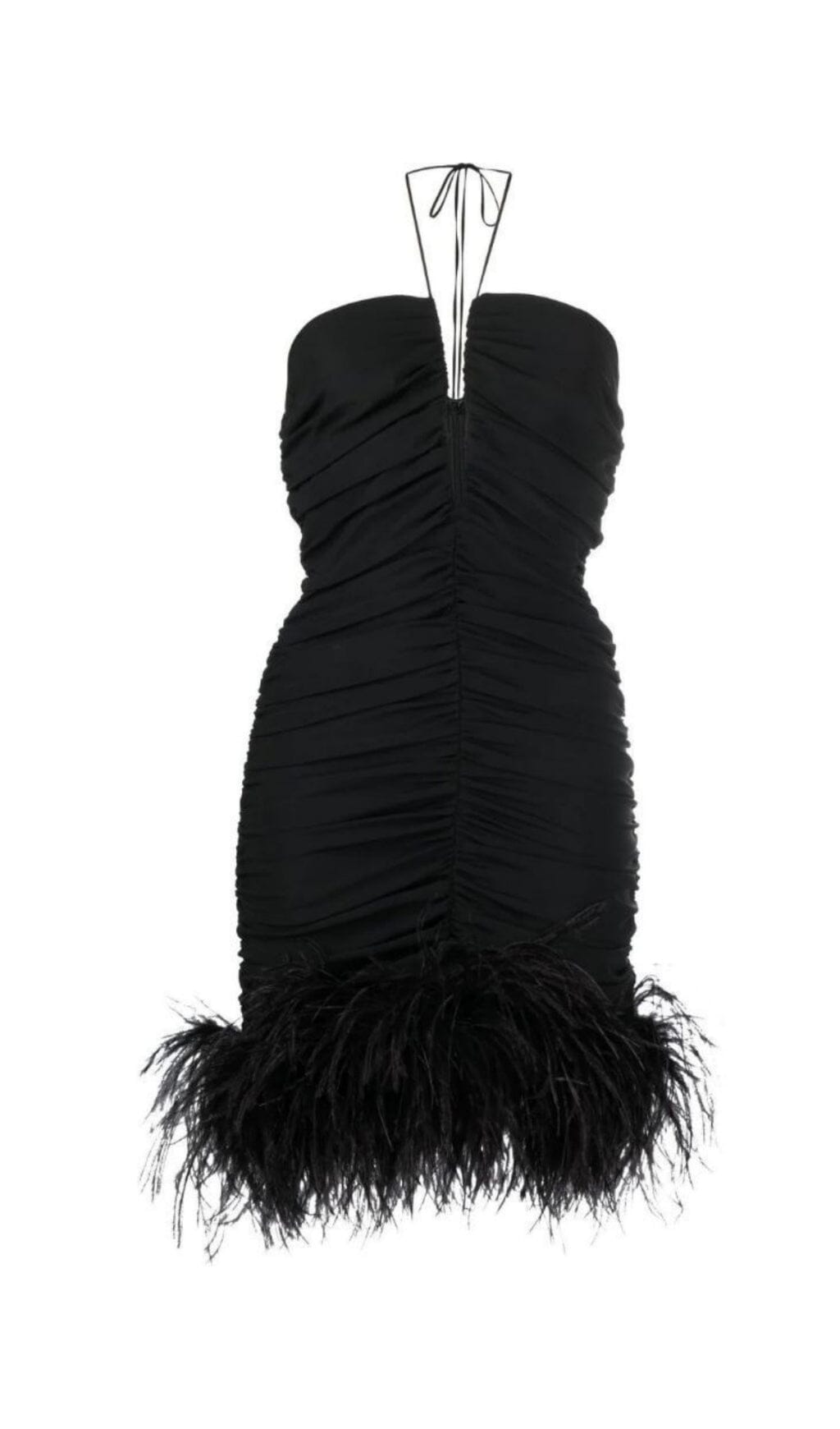 This mini dress is designed with a nipped-in waist. creating a shape that's both distinct and flattering. And it comes in a deep black shade that calls for pop-color heels or an eye-catching clutch. Constructed from panels of stretch that's been ruched and artfully draped throughout. Has a strapless bodice inspired by corsetry. Complete your outfit with platform heels and a clutch.