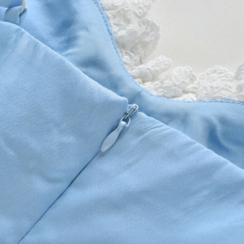 The lace detailing on the dress adds a touch of elegance and femininity. while the mini length gives it a playful and flirty vibe. This dress is perfect for a day out with friends. a picnic in the park. or a night out on the town.