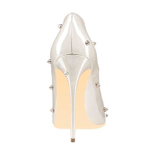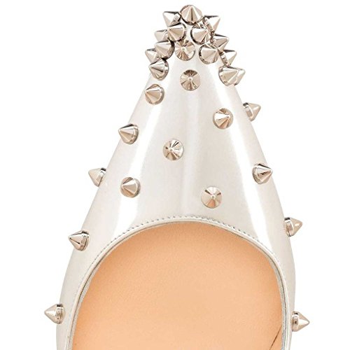 | Name | FSJ Silver Studs Shoes Pointy Toe Mirror Leather Stiletto Heel Pumps |