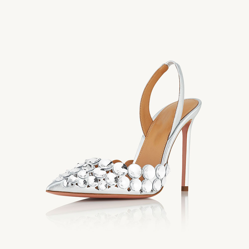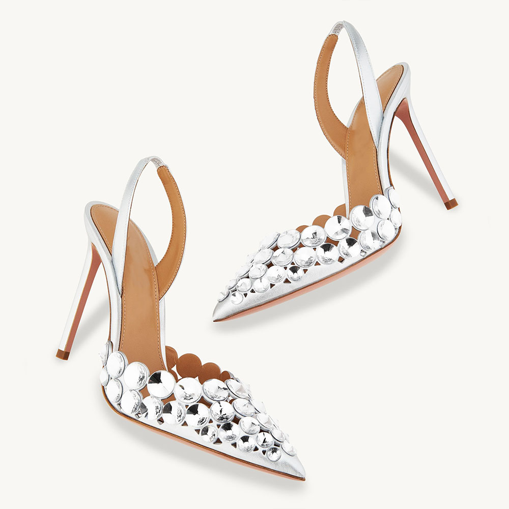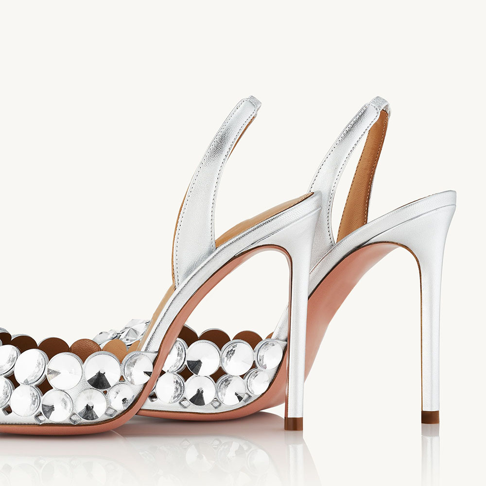| Name | Silver Pointed Toe Slingback Pumps Rhinestone Sexy High Heels Shoes |