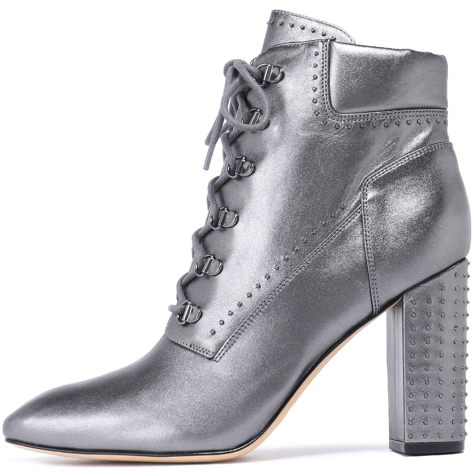 | Name | Silver Studs Lace up Boots Square Toe Chunky Heels Ankle Boots |