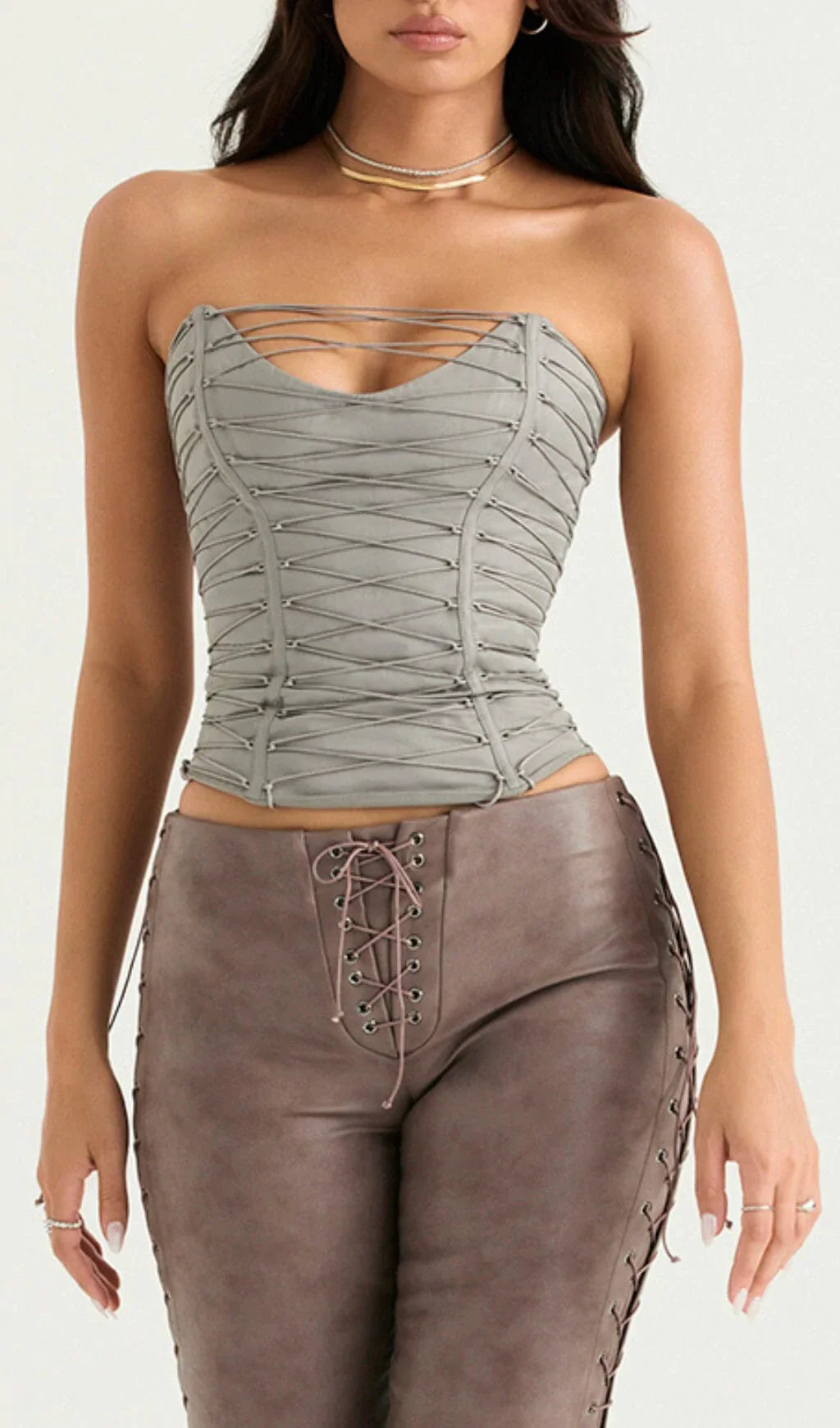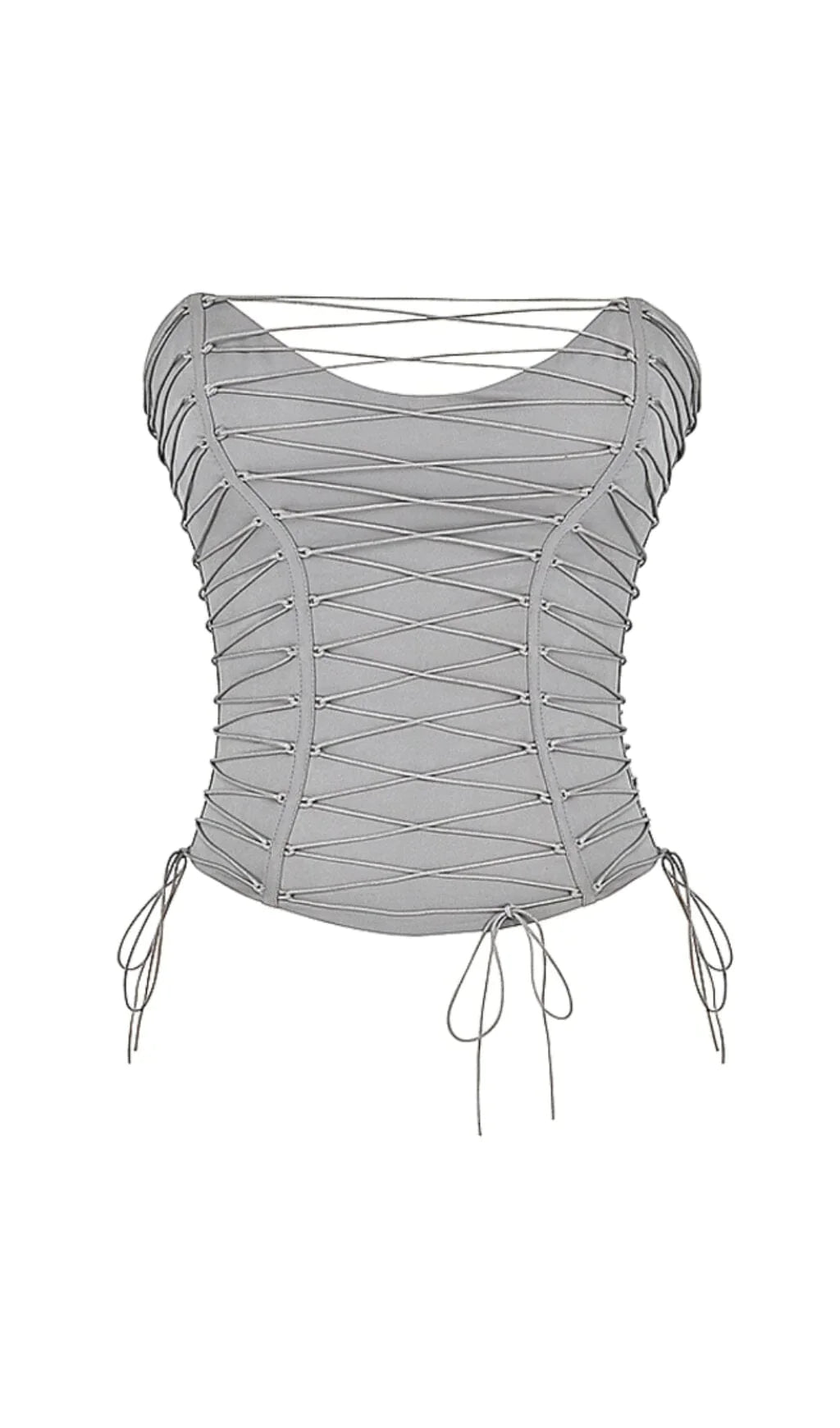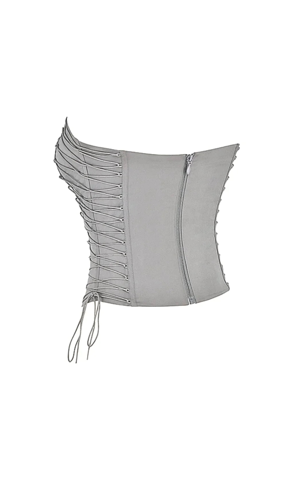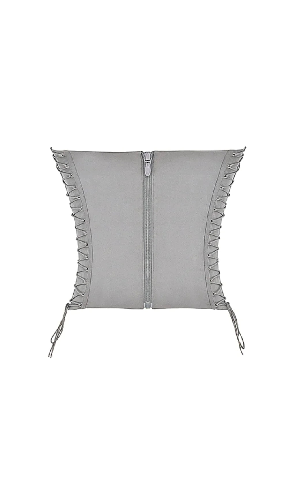 This elevates the staple corset with an unique lace up design. Cut from stretch cotton twill in a smokey hue. it has a soft sweetheart neckline and internal boning to snatch and cinch the waist for a structured silhouette.