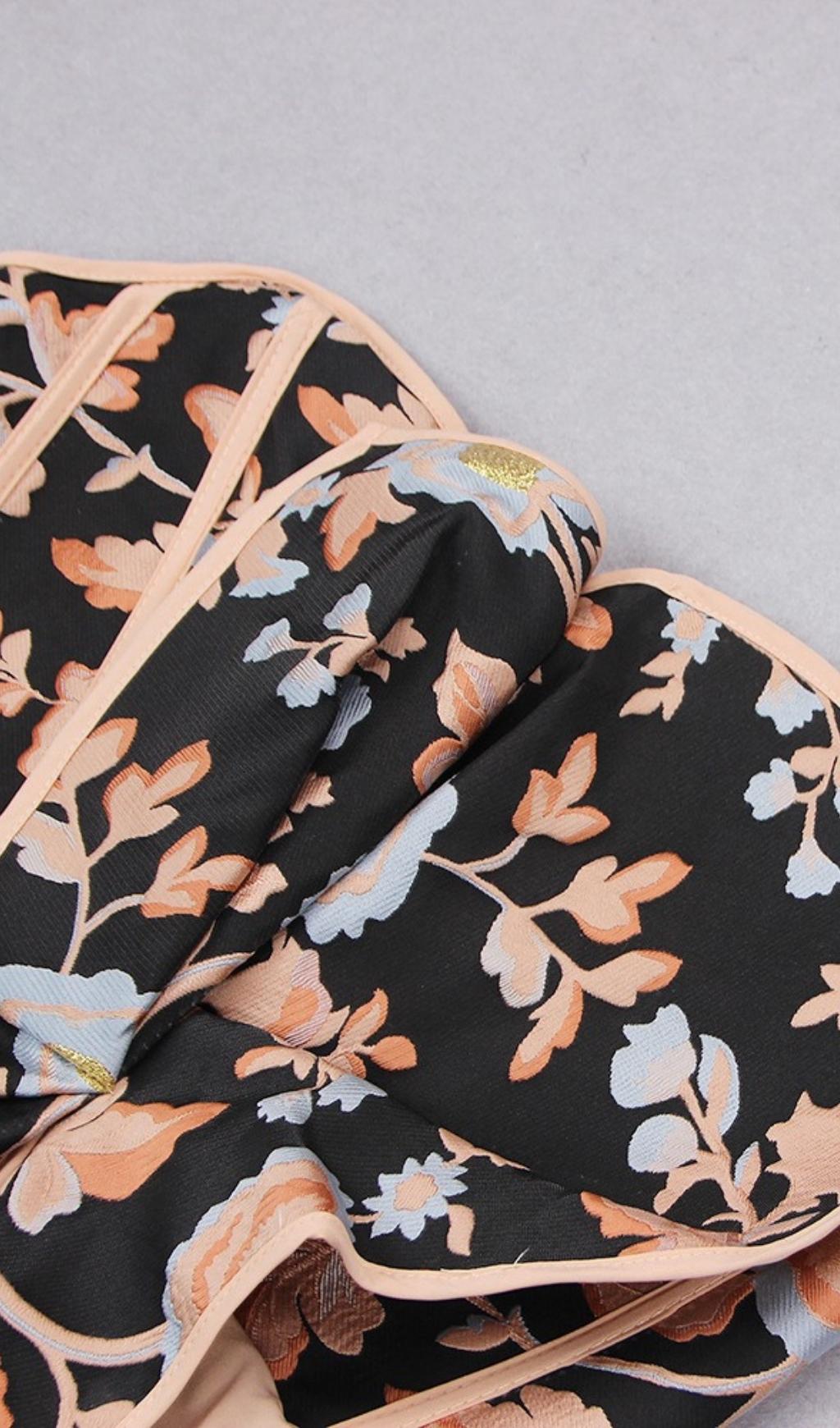 Fall for our Strapless Jacquard Midi Dress.This strapless midi dress shows off your shoulders whilst cut-out shaped detailing keeps you secure.Designed in a floraljacquardwith a ruffle detail.Pair with your favorite heels and you'll be ready for date night.