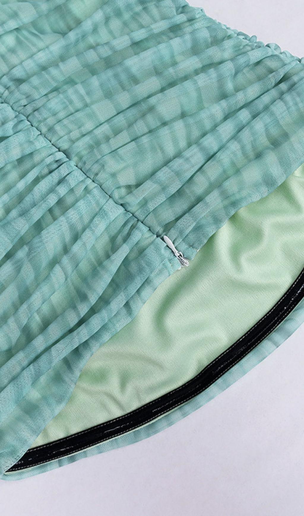 Cut from our softest and silky ruched organza mesh. Our midi dress has an inbuilt underwired bra and a power mesh lining layer that acts just like shapewear within the dress for a smooth and seamless silhouette. It has a flattering strapless cut. gorgeous rich ivy tones and is suitable for all bust sizes. We love this teamed with simple beige strappy sandals for your party nights out.