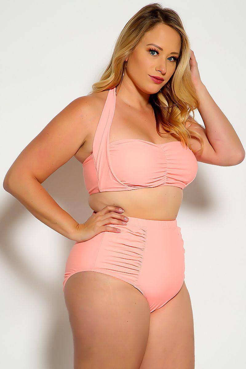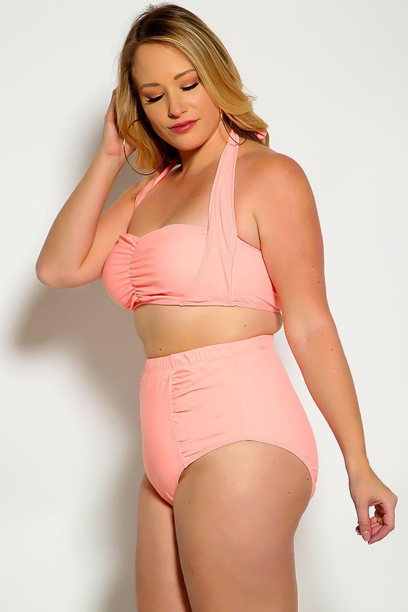 Look sexy this summer in this two piece features; bold color. halter strap. ruched center. high waist ruched fitted swimsuit.