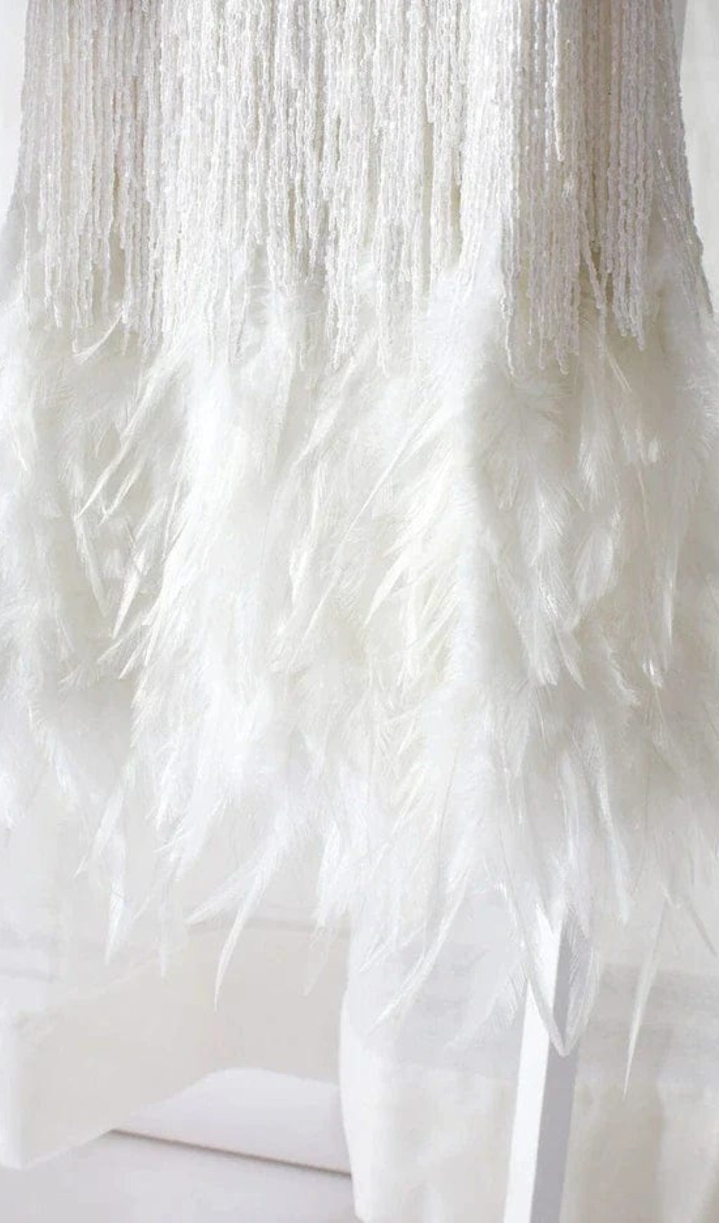 If you want to be a sexier. more attractive woman. check this out. You deserve this dress. The waist-in design shows off your beautiful figure. Feather design. let you become the crowd in the most dazzling sexy girl. White makes you cute and charming.