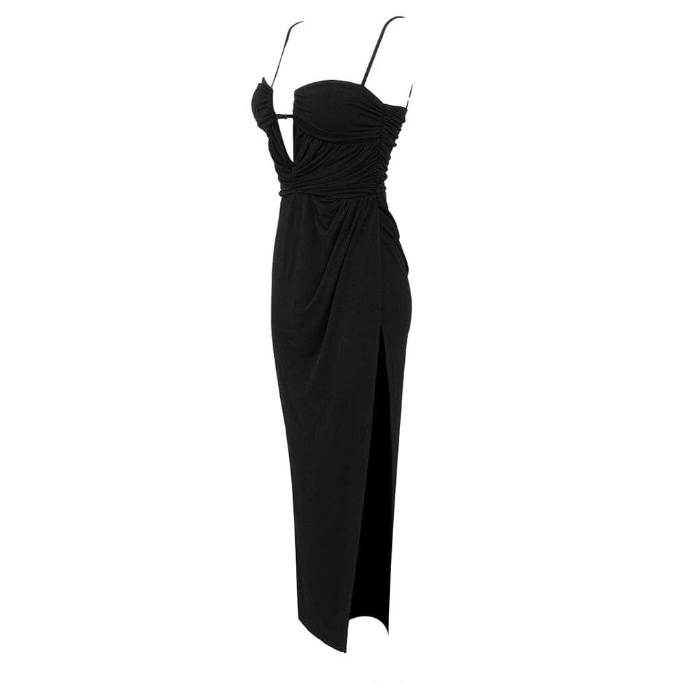 Featuring a halter neckline and an alluring thigh-high slit. this dress is a true showstopper. The figure-hugging silhouette accentuates your curves while the long. flowing skirt adds an extra touch of elegance. Pair our Thigh Slit Halter Maxi Dress with your favorite heels and statement jewelry for a glamorous evening out.