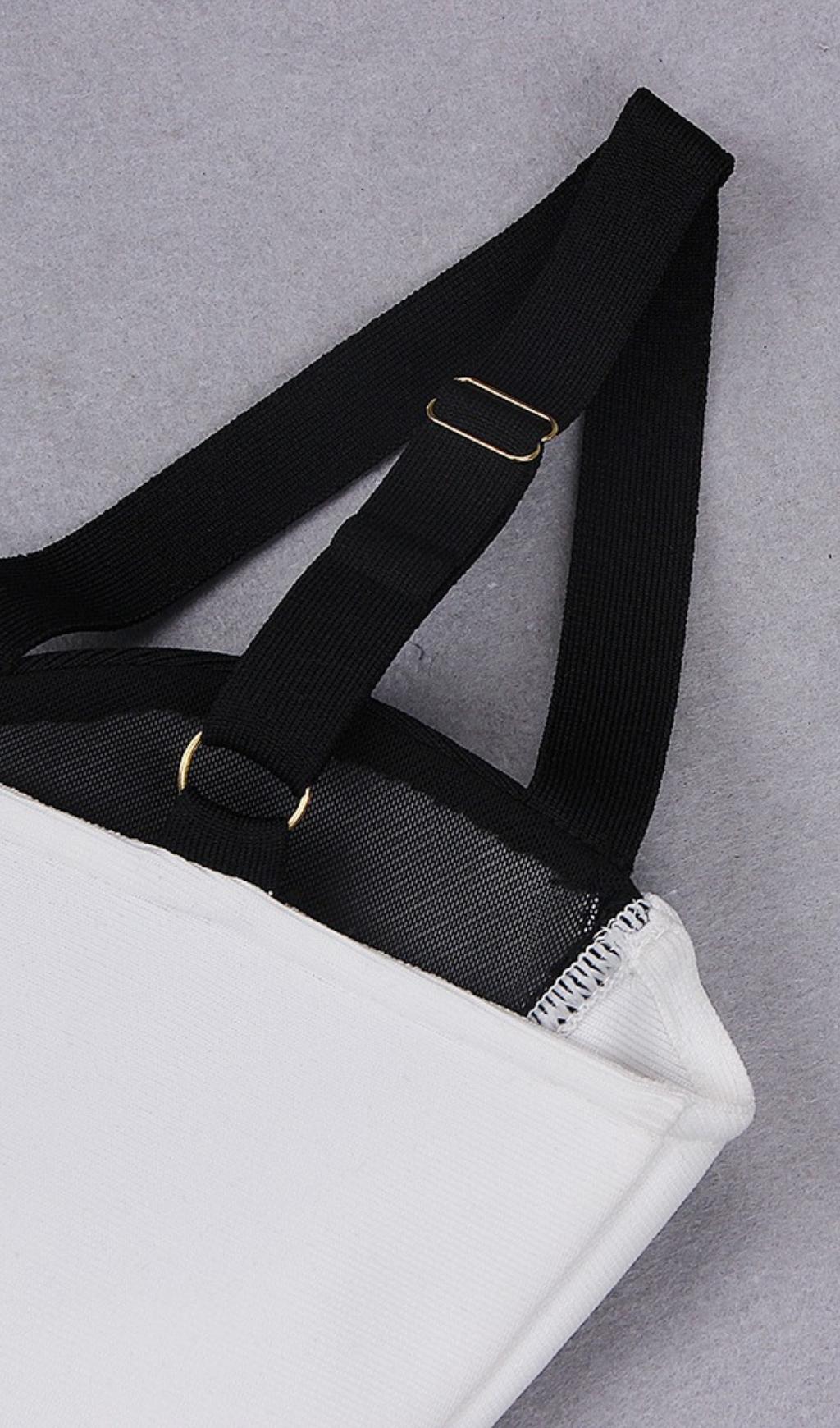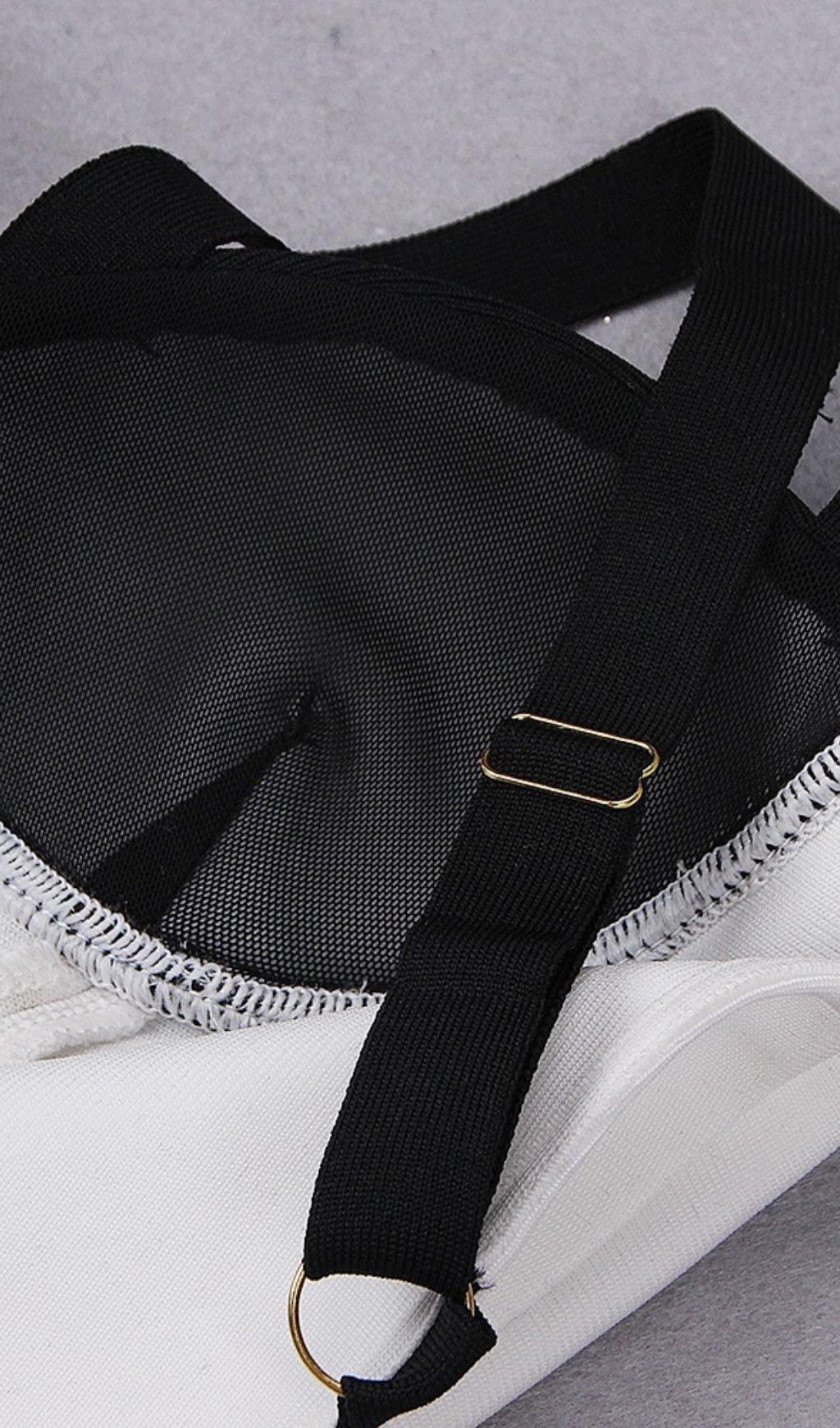 It's the ruching for us. Our pretty. feminine midi bandage dress that'll hug your curves.Special straps and neckline design. small black embellishment make this dress stand out. It's crafted from bandage fabric to sculpt and shape the figure. acting like shape wear that is cleverly built into the dress.Style with your favorite accessories and show off your best features this party season.