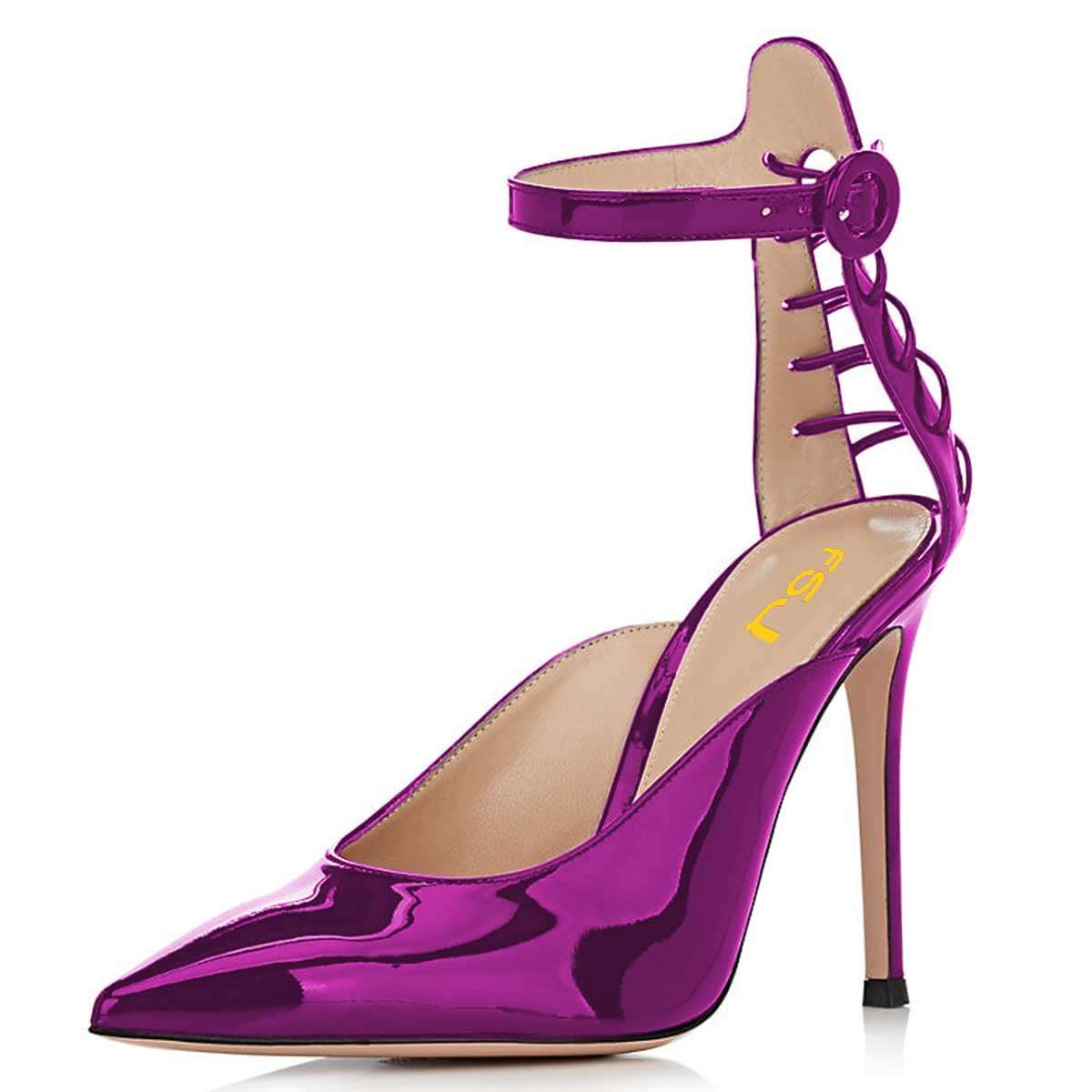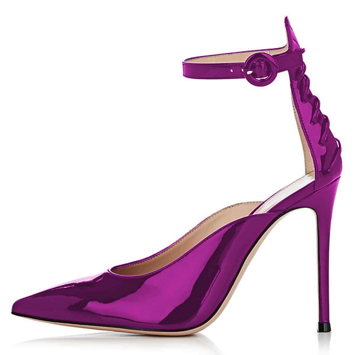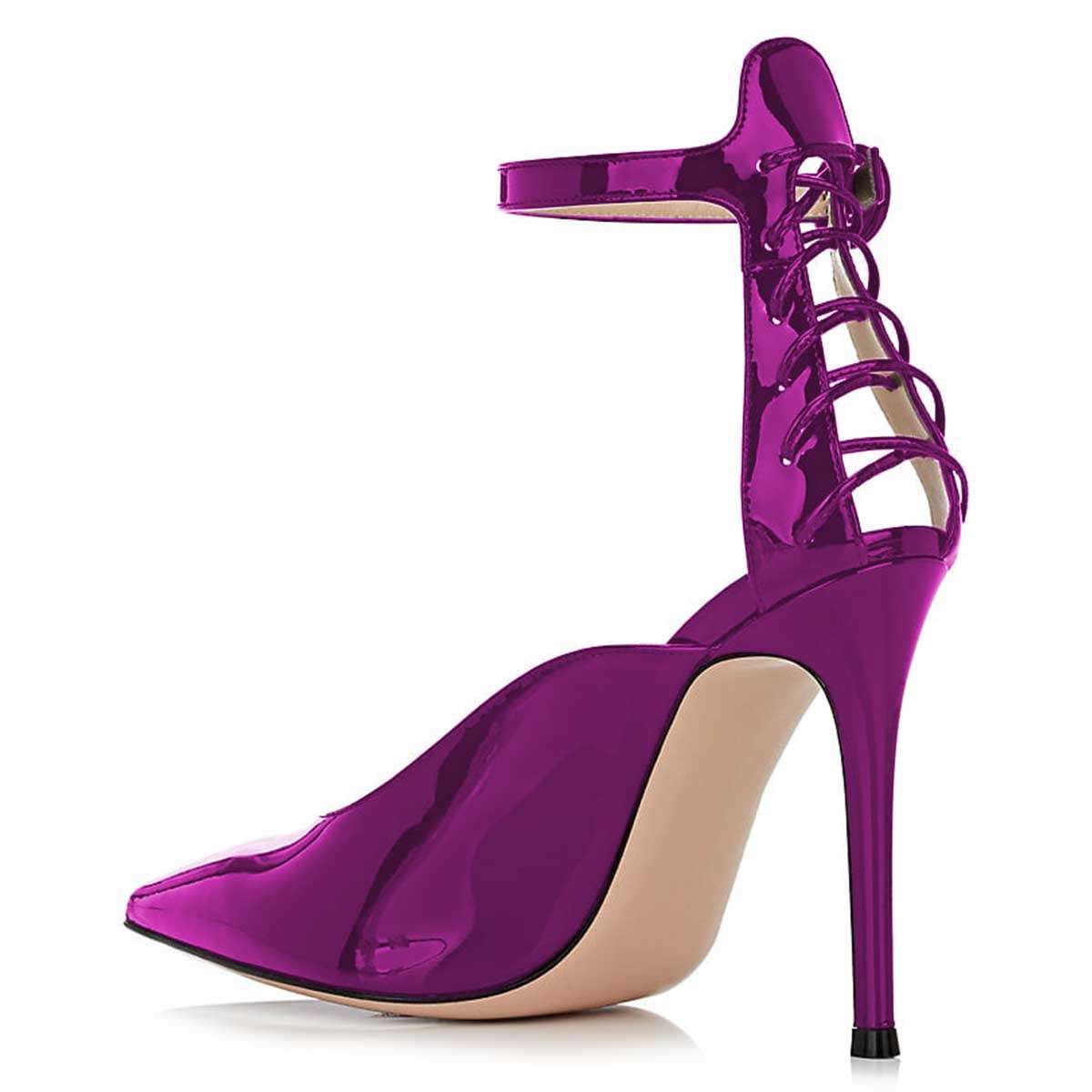 | Name | Purple Mirror Leather Lace Up Ankle Strap Heels Pumps |
