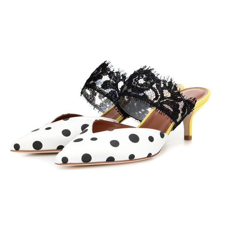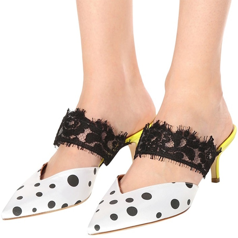 | Name | White and Black Polka Dot Lace Kitten Heel Mules |