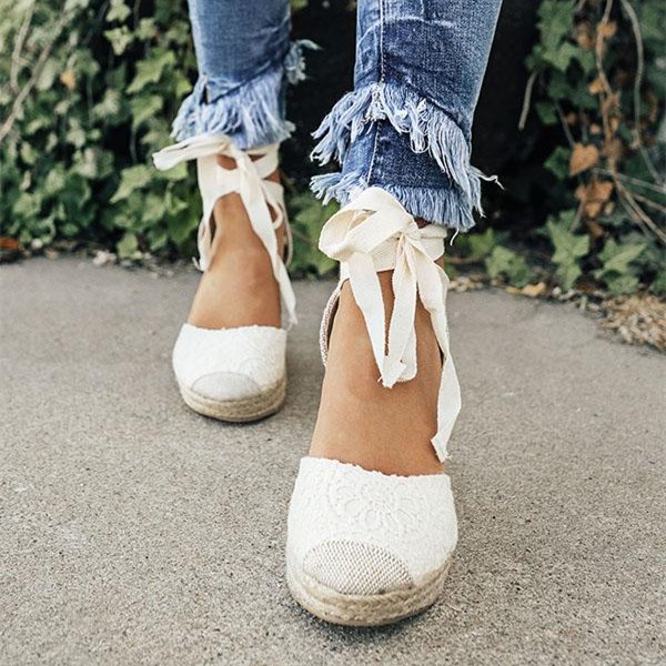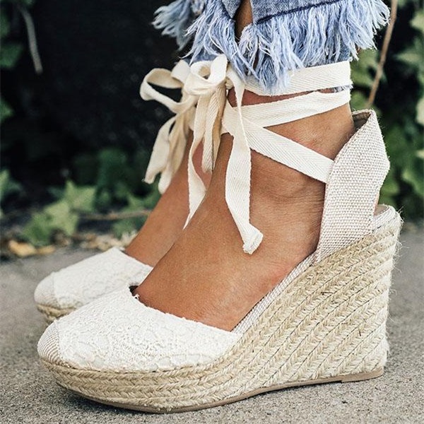 | Name | White Canvas Lace Strappy Platform Wedge Heels Sandals |