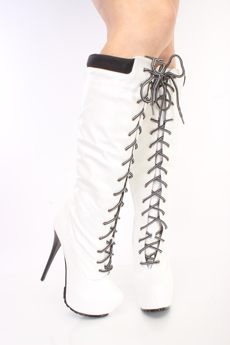 | Name | White fashion Lace Up Stiletto Heels Knee High Platform Long Boots |