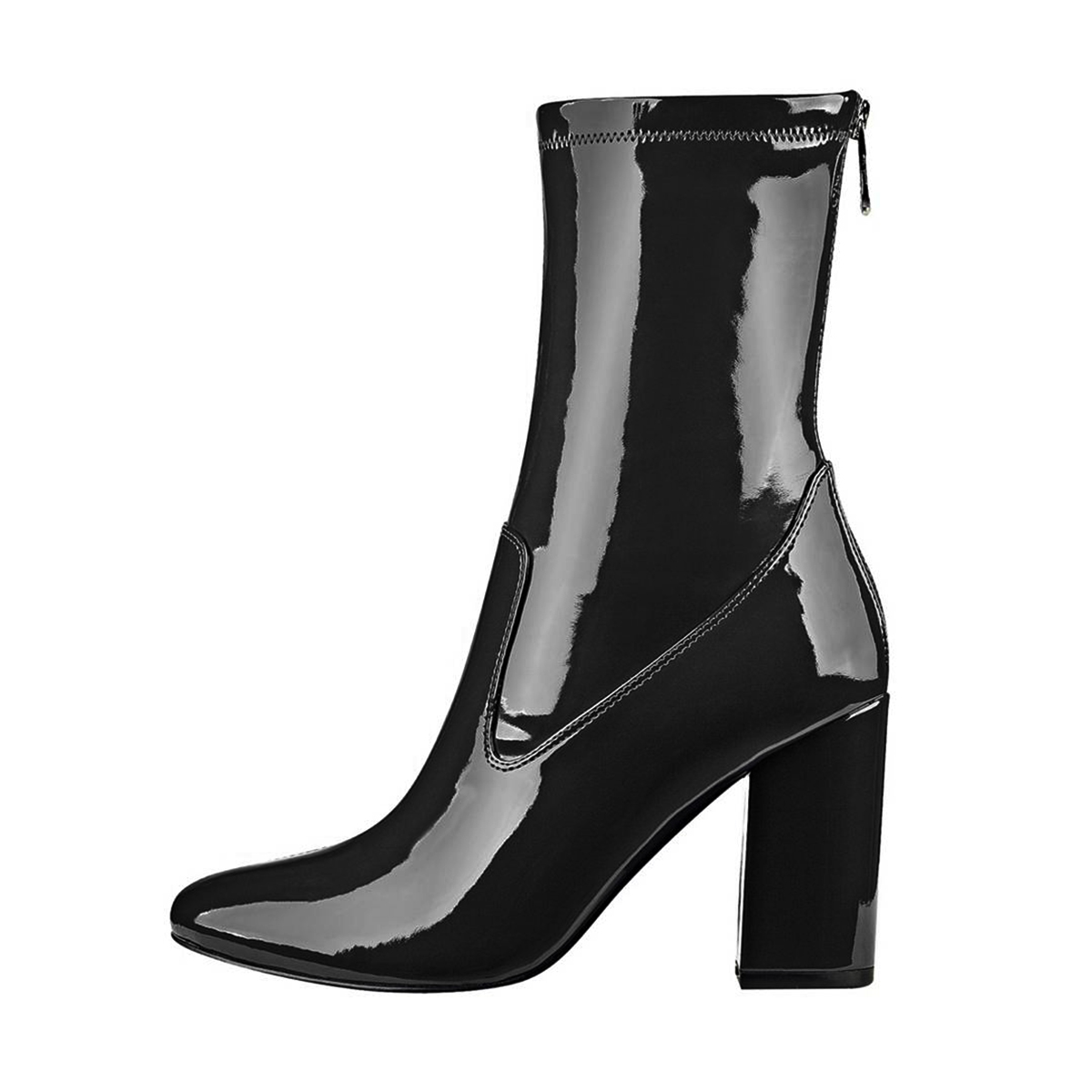 | Name | Women's Black Patent Leather 4 Inches Chunky Heel Boots |