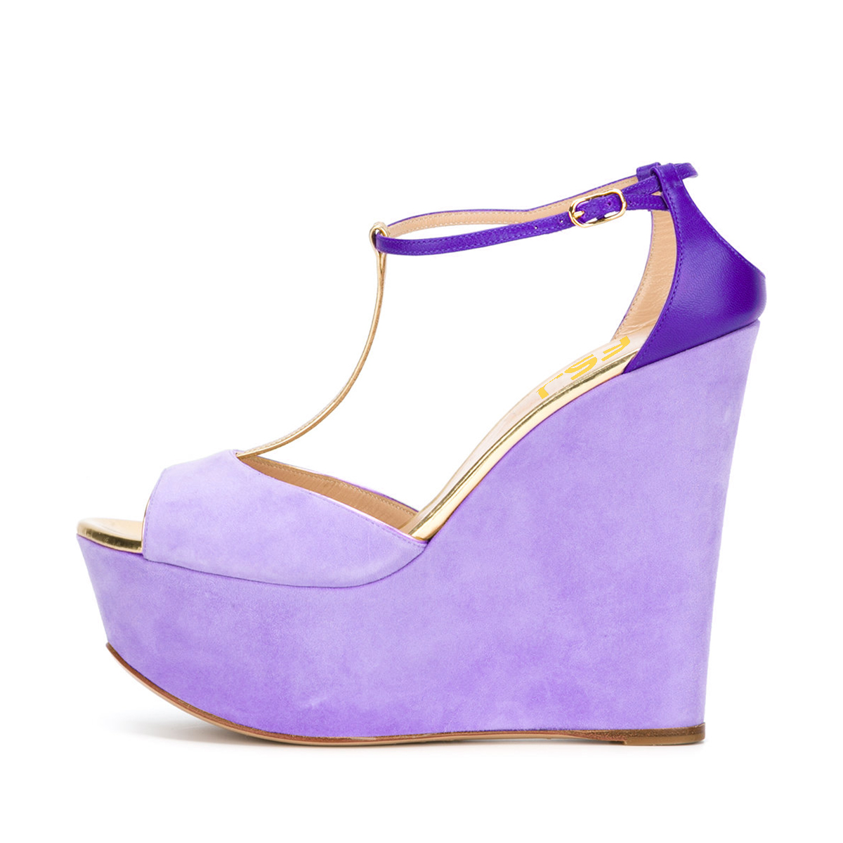 | Name | Women's Purple T-strap Peep Toe Wedge Sandals |